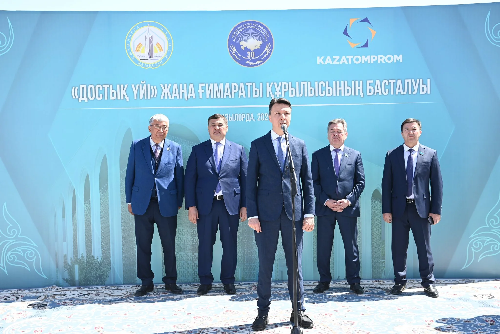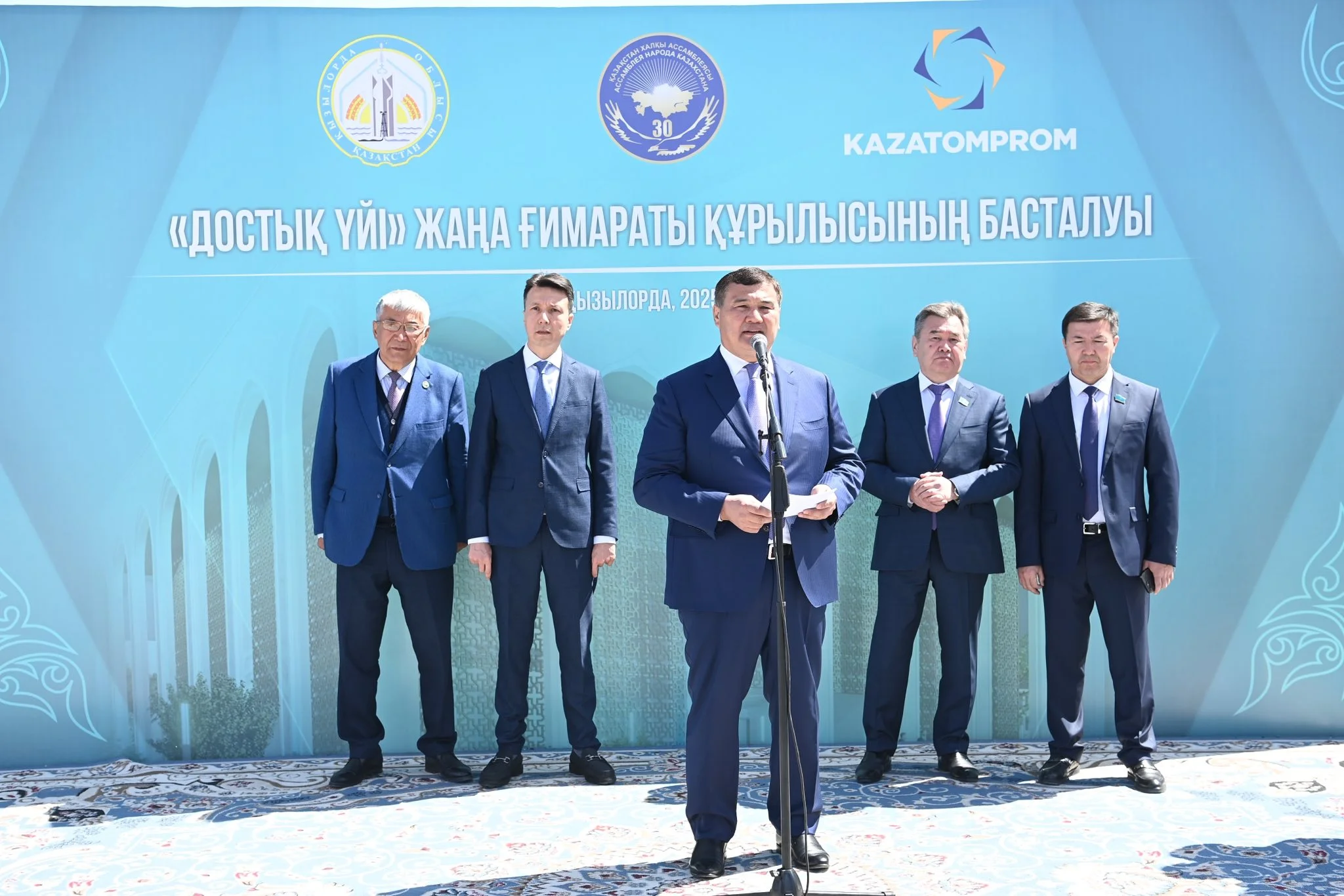 Бүгін Қазақстан халқының бірлігі күнінде облыс әкімі Нұрлыбек Нәлібаевтың қатысуымен Қызылорда қаласында «Қазатомөнеркәсіп» ұлттық атом компаниясы» акционерлік қоғамының қолдауымен бой көтеретін «Достық үйінің» жаңа ғимаратының іргетасын қалау рәсімі өтті. Салтанатты шараға Парламент Сенаты мен Мәжілісінің депутаттары Руслан Рүстемов, Мұрат Ергешбаев, мемлекет және қоғам қайраткері Мұрат Бақтиярұлы, «Қазатомөнеркәсіп» ұлттық атом компаниясы» акционерлік қоғамының басқарма төрағасы Мейіржан Юсупов, зиялы қауым өкілдері мен сала басшылары қатысты.