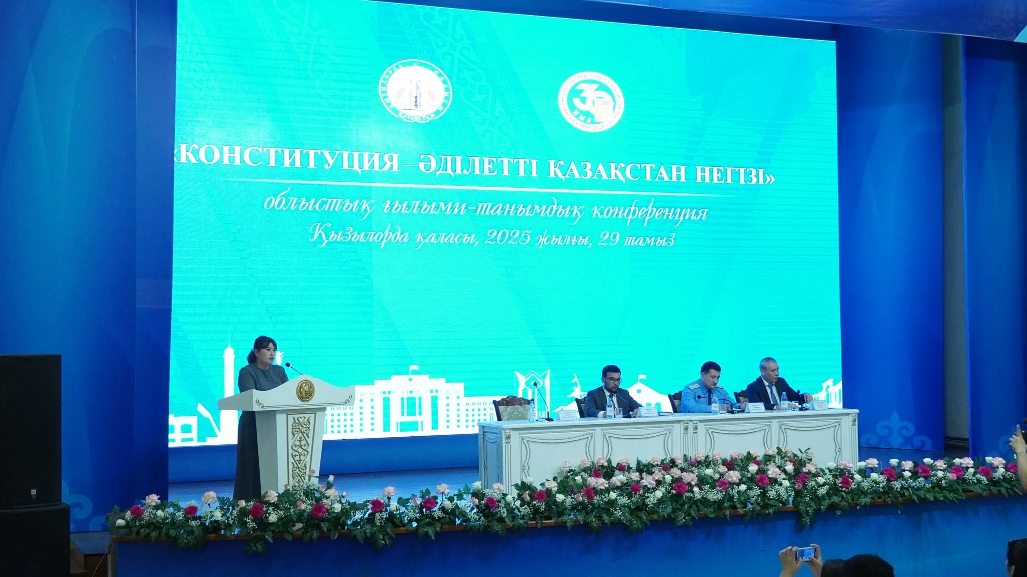 Баяндамалар легін Қызылорда облысы бойынша Соттар әкімшісі департаменті басшысының міндетін атқарушы Мөлдір Асанова ашты. Ол өз сөзінде Конституцияның мемлекеттілікті қалыптастырудағы құқықтық базасы ретіндегі маңызын атап өтті.