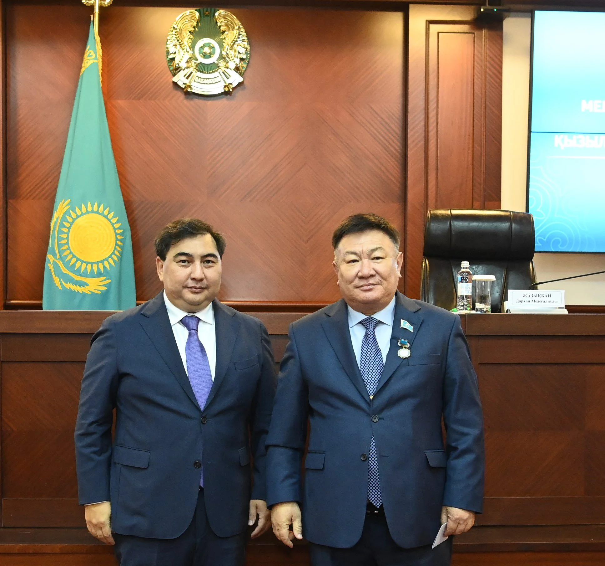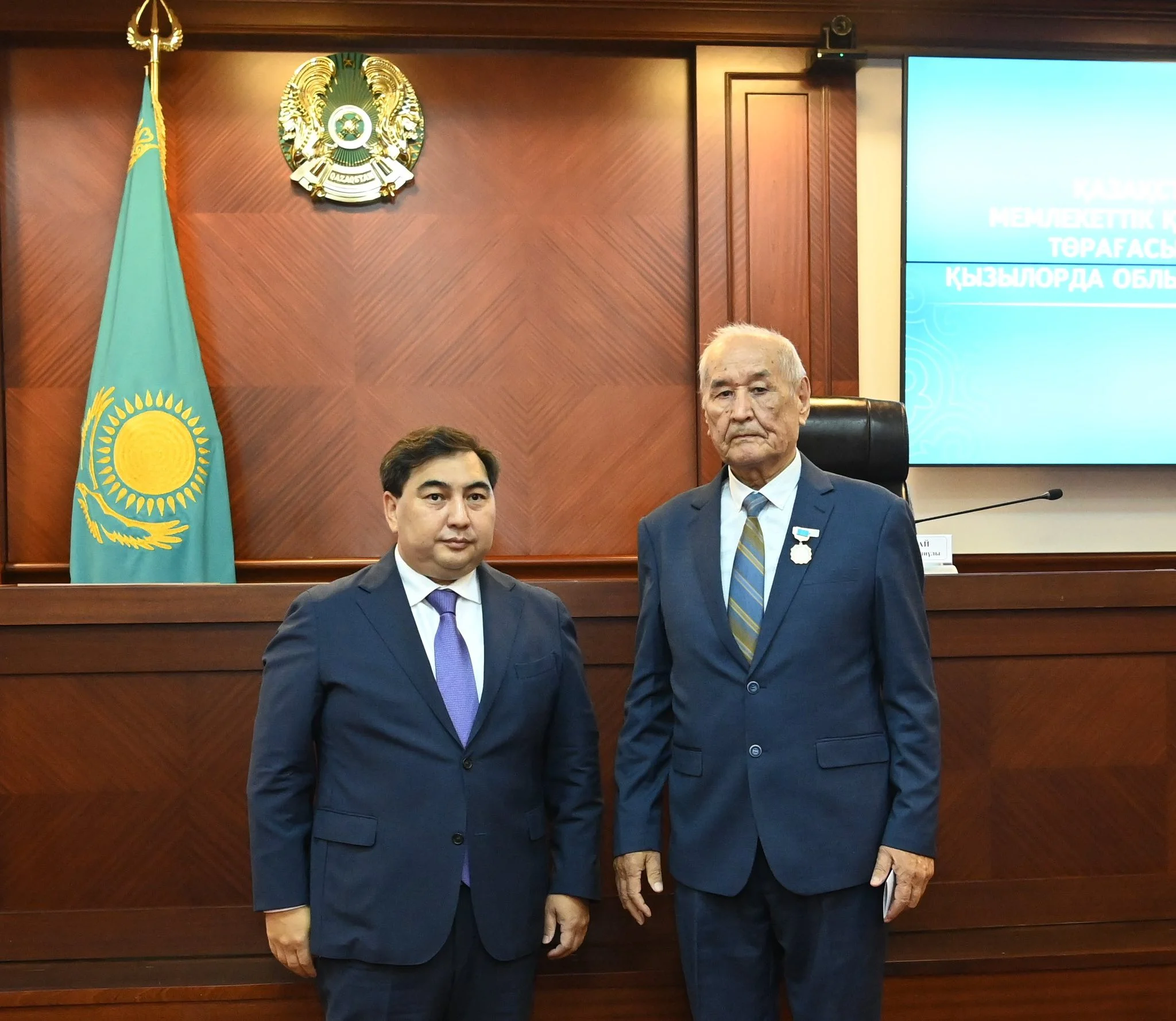 Жиында Сыр өңірінің әлеуметтік-экономикалық дамуы жолында елеулі еңбек еткен ардагерлерге ҚР Мемлекеттік қызмет істері агенттігінің «Мемлекеттік қызмет ардагері» төсбелгісі табысталды.