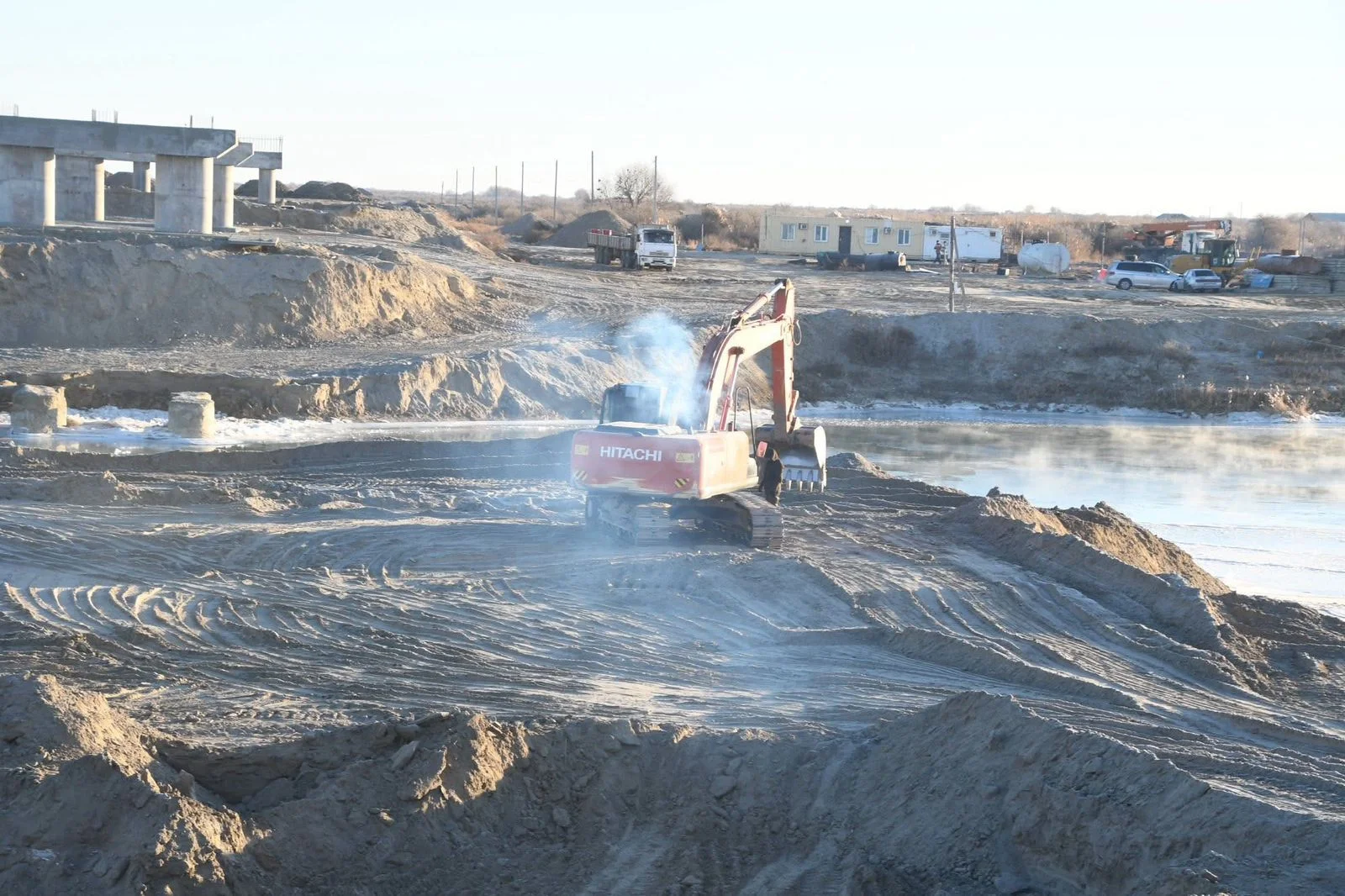 Жұмыс сапары Қарлан көпірінде, Бекарыстан би ауылындағы спорт кешінінің құрылыс алаңында жалғасты. Көпір құрылысын «НұрлыТау ЛТД» жауапкершілігі шектеулі серіктестігі қолға алған. Кіреберіс жолы салынып, Сырдария өзені суын уақытша бөгеу арқылы бетон тіреулер құйылуда. Дарияның арғы бетіндегі 12 мыңға жуық халық үшін бұл көпірдің маңызын айтқан Бахыт Дүйсенұлы ең бірінші кезекте құрылыстың сапасы мен мерзімінде аяқталуын тапсырды.