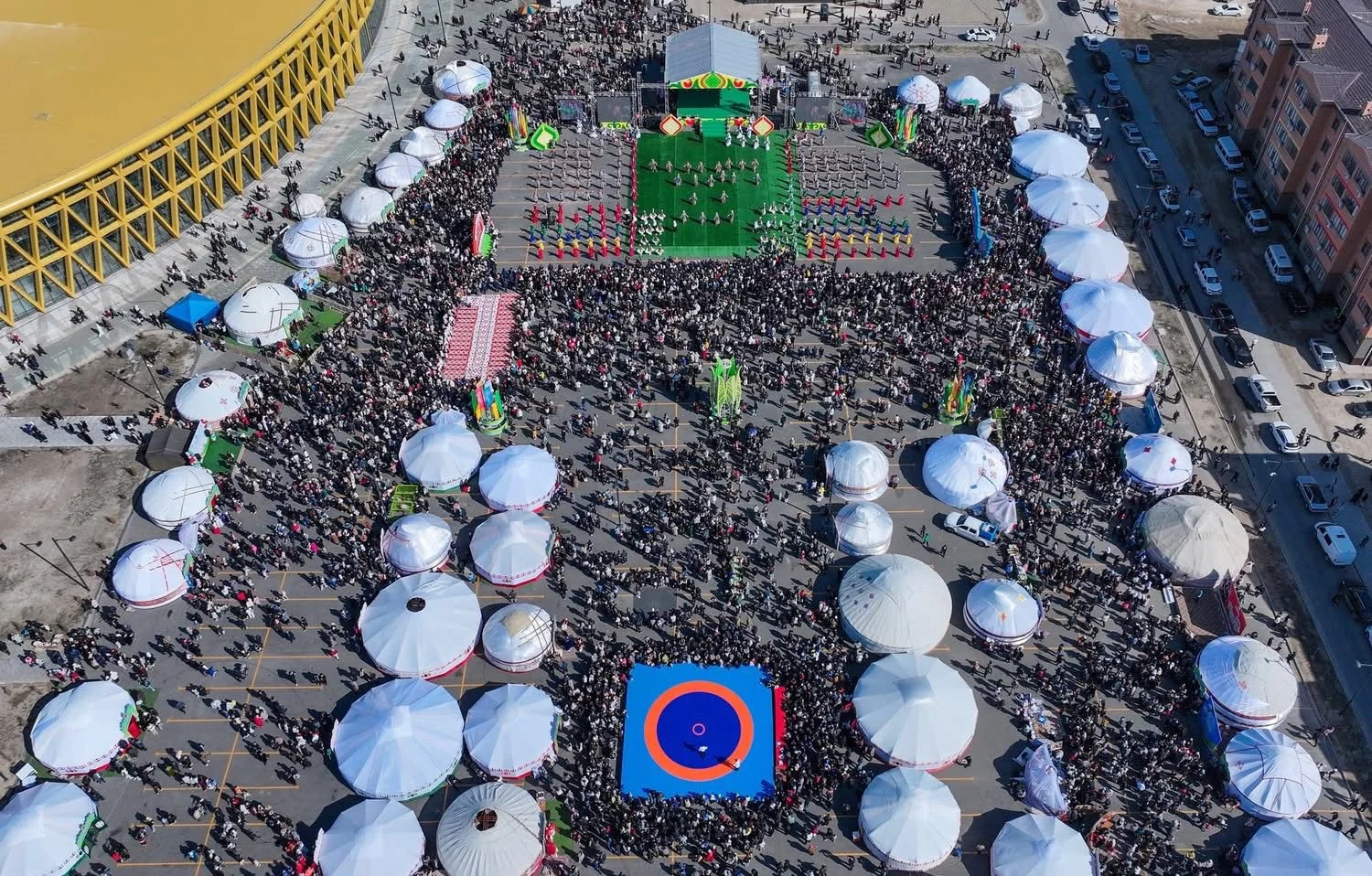Кейінгі күндері ызғардың да беті қайтып, күн шуағын молынан төкті. Көктемнің жаңаруымен үндескен қала келбеті ерекше құлпырып, мерекелік көңіл-күйді сезіндірді. Жаңа стадион алаңына 60-қа жуық киіз үй тігіліп, береке мен бірліктің нышанындай ақ дастархан жайылды.