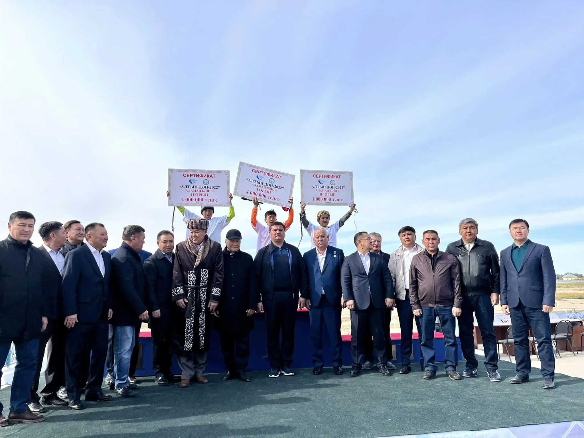 Бес шақырымды артқа тастаған тай жарыста шиелілік Дамир Әуезхан І орын иеленсе, 11 шақырымды құрайтын құнан бәйгеде жалағаш ауданының шабандозы Ержан Әлихан оза шапты. Оған 4 миллион теңгенің сертификаты табысталды. Ал, 15 шақырымды оңай еңсерген топ бәйгеде Жамбыл облысының азаматы Асылжан Назар мәре сызығын алғаш басып, 2 миллион теңге иеленді.