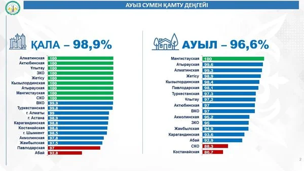 СЫР ӨҢІРІНДЕ САПАЛЫ АУЫЗ СУМЕН ҚАМТУ КӨРСЕТКІШІ ЖОҒАРЫ