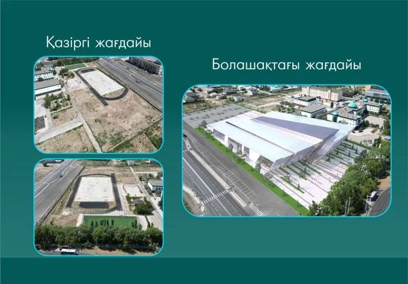 Кешенде 2 000 көрерменге арналған әмбебап арена, 50 метрлік олимпиадалық стандартқа сай бассейн және сыйымдылығы 600 көрерменге арналған зал, жекпе-жек жаттығу, құрылтай өткізетін және хореография залдары қарастырылған. Сонымен қатар, аренаның инфрақұрылымдық жүйелері мен автотұрақ мәселесі де оңтайлы шешіледі. Бұл бюджет есебінен жұмсалатын қаржыны да үнемдеуге мүмкіндік береді. Қазіргі таңда кешеннің жоба-сметалық құжаттамасы дайындалуда.