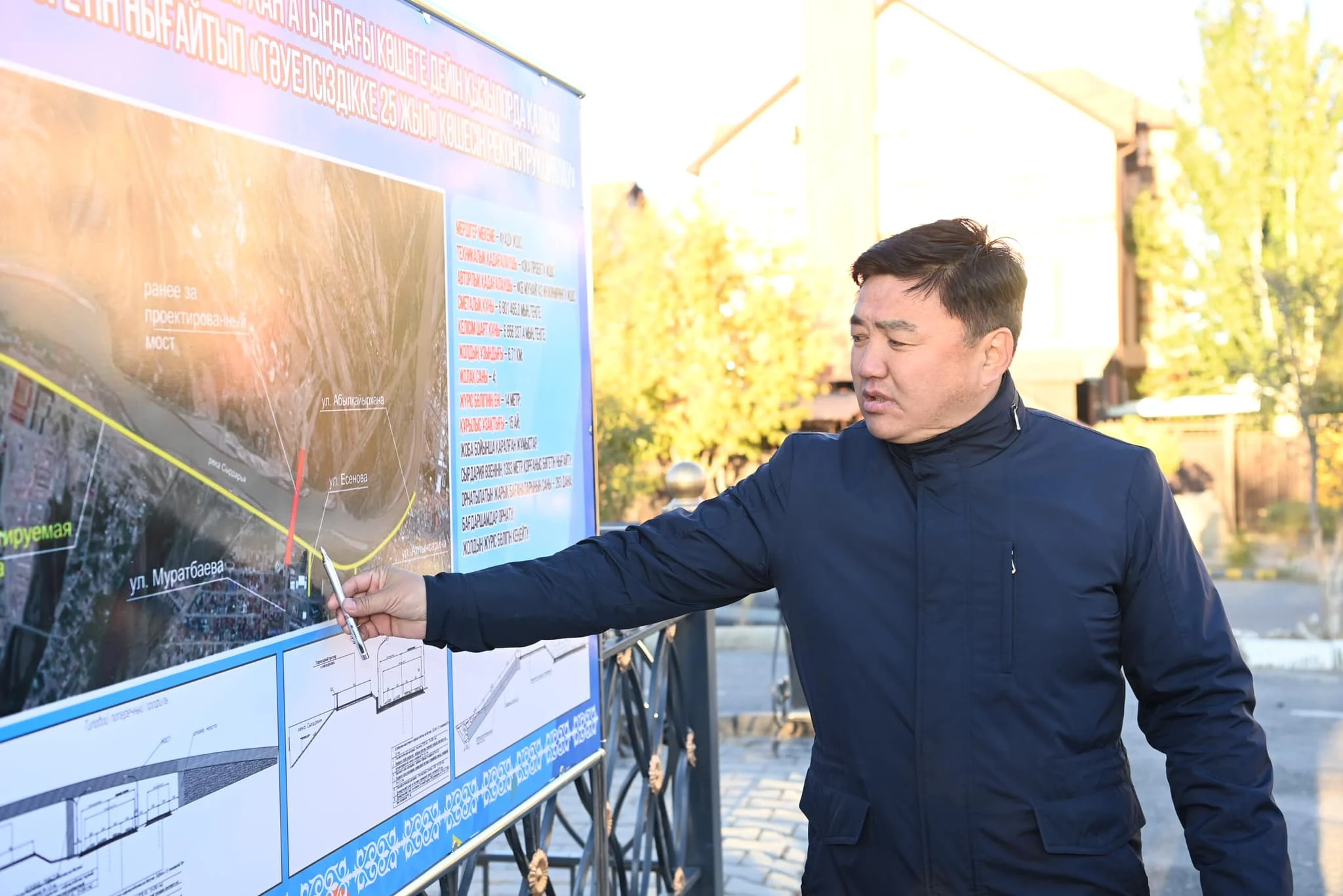 Әрі қарай аймақ басшысы республикалық маңызы бар «Қызылорда-Павлодар-Успенка-РФ шекарасы» автомобиль жолының «Қызылорда-Жезқазған» 2-12 шақырымы аралығындағы орташа жөндеу жұмыстарымен танысты. Қазіргі уақытта Бейбарыс сұлтан көшесі мен Жаппасбай батыр көшесінің қиылысындағы жол айрығынан бастап «Бәйтерек» ықшам ауданына өтетін көпірге дейінгі аралықта жөндеу жұмыстары басталған.