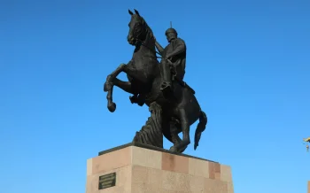 Сыр елінің бас қаласы - Қызылорданың екі кең көшесі түйіскен тұста еңселі ескерткіш тұр. Қос қанатты пырақ кейпін көз алдымызға келтіріп, қазанат үстінде маңдайы мұқым жұртына қарап, намыс пен жігердің жарқылындай Жалаңтөс баһадүрдің бейнесі алыстан еріксіз аудартады. Жаратылысы жәй кісі емес, сұлбасынан сұс, тұлғасынан мыс айбаты аңғарылып, батырға тән болмысты байқаймыз. Сұп-суық ызғарымен шағып жіберетіндей шаншыла қараған көзқарасты танимыз.